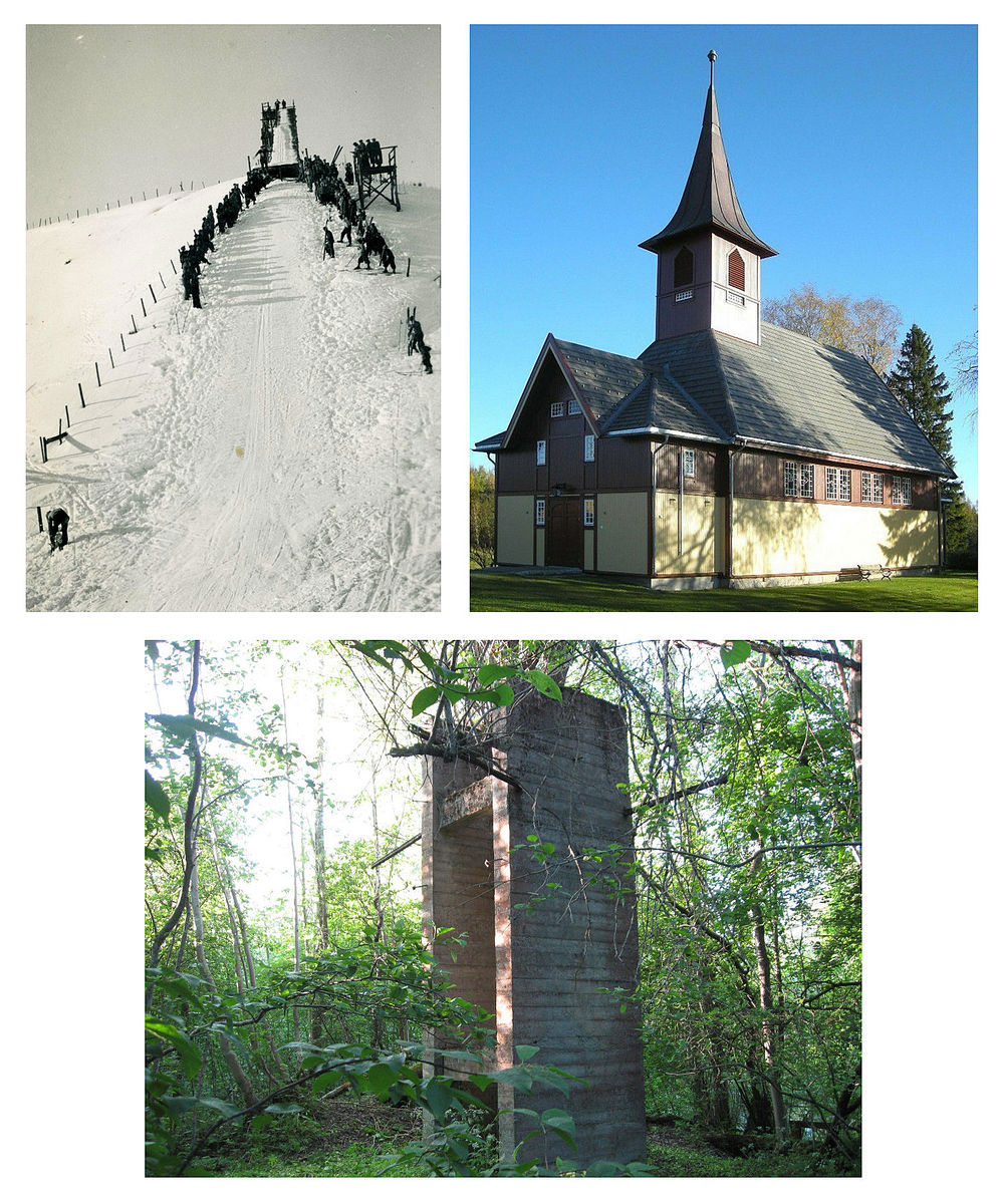 Hoppbakke på Råmyra, Dalen kirke, industriminner på Roven.