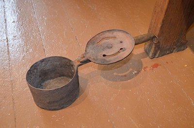 Dette er et varmebekken fra Blesa, som er å se i kommunens Blesasamling på Lund (Fetsund lenser). Et varmebekken blei brukt til å frakte varme glør i.