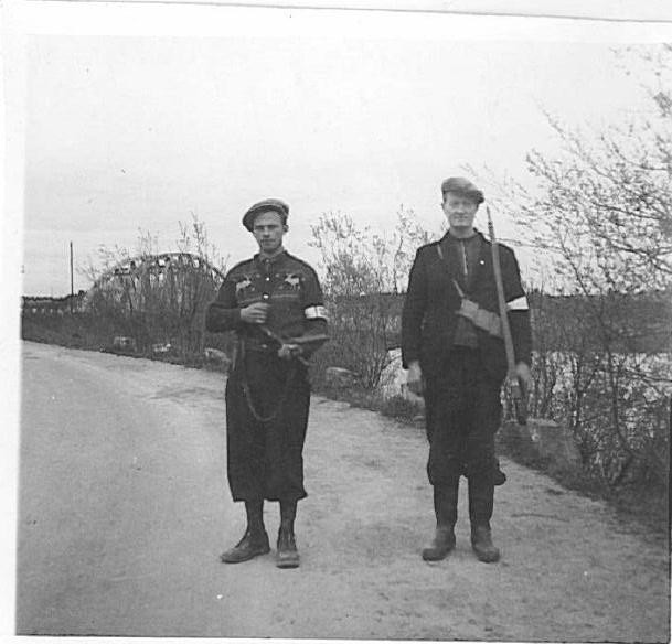 Tittelbildet viser Magnus Solberg til venstre og Sigurd Knatribakk til høyre. De har nettopp overtatt vaktholdet ved Fetsundbrua fra tyskera 8. mai 1945. Bildet er utlånt av Johs. Henriksen.
