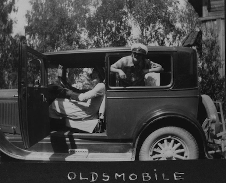Oldsmobilen med Ingri Winsnes ved rattet og søsteren Asborg bak